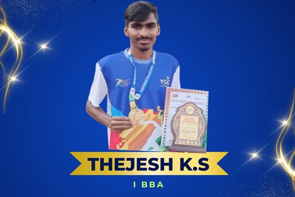 St Joseph’s College, Hassan, proudly congratulates Thejesh K.S (I BBA) on his remarkable achievement at the Youth Games Open National Championships 2026 held in Delhi. Thejesh secured the Gold Medal in the 800 meters, showcasing exceptional endurance, focus, and athletic excellence.
